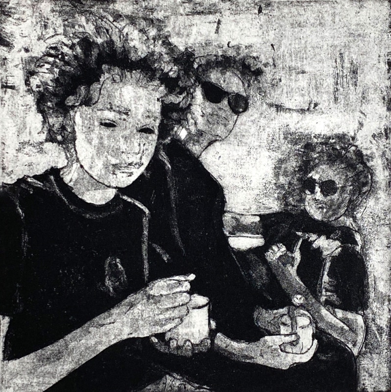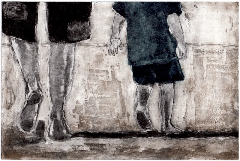 « Mes estampes, imprimées à partir de matrices de cuivre ou zinc gravées à l’acide, sont figuratives, mettant en scène des personnages et des situations auxquels tout à chacun peut s’identifier. »